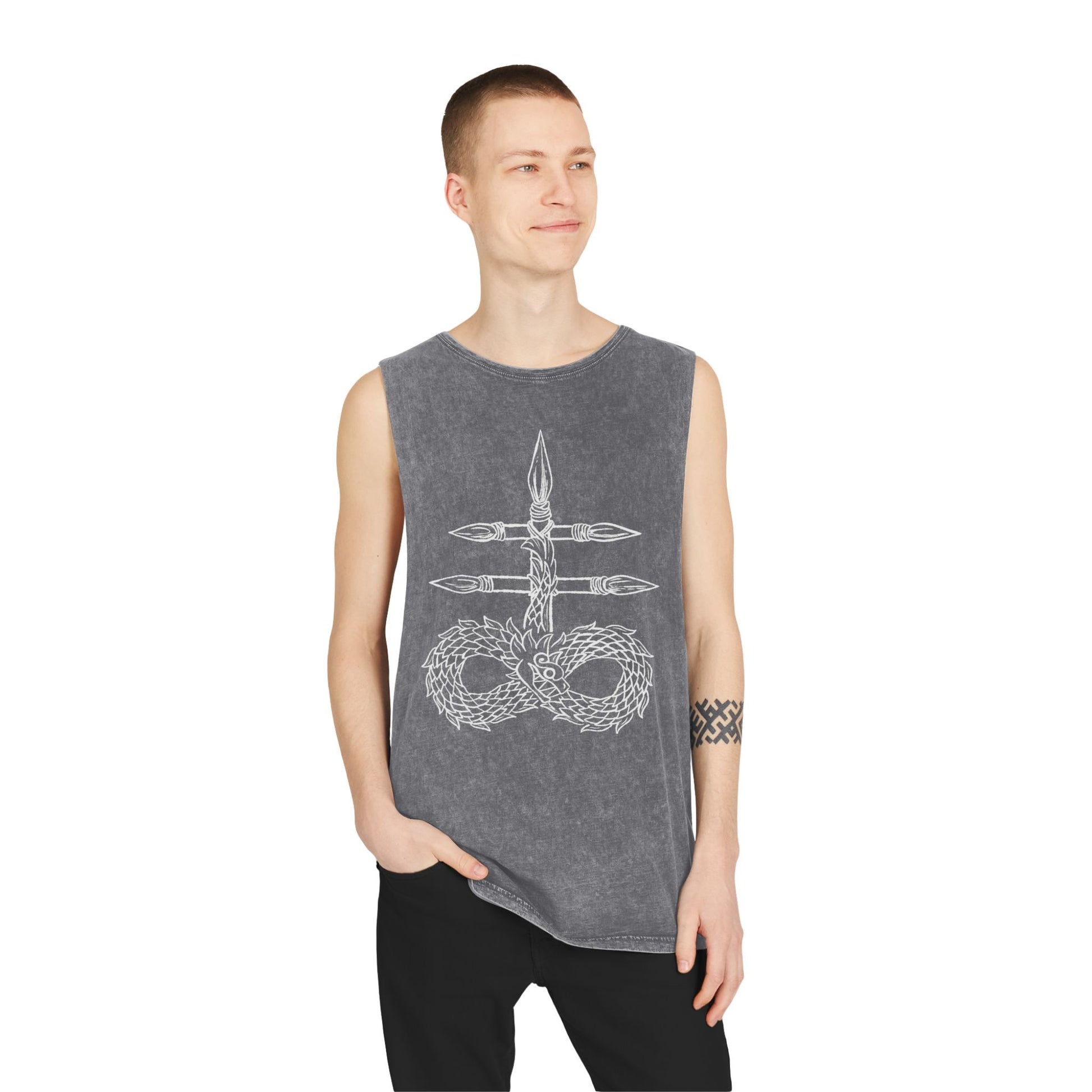 Unisex Stonewash Tank Top with Intricate Design, Casual Wear, Bohemian Style, Perfect for Summer Festivals, Unique Gift Idea